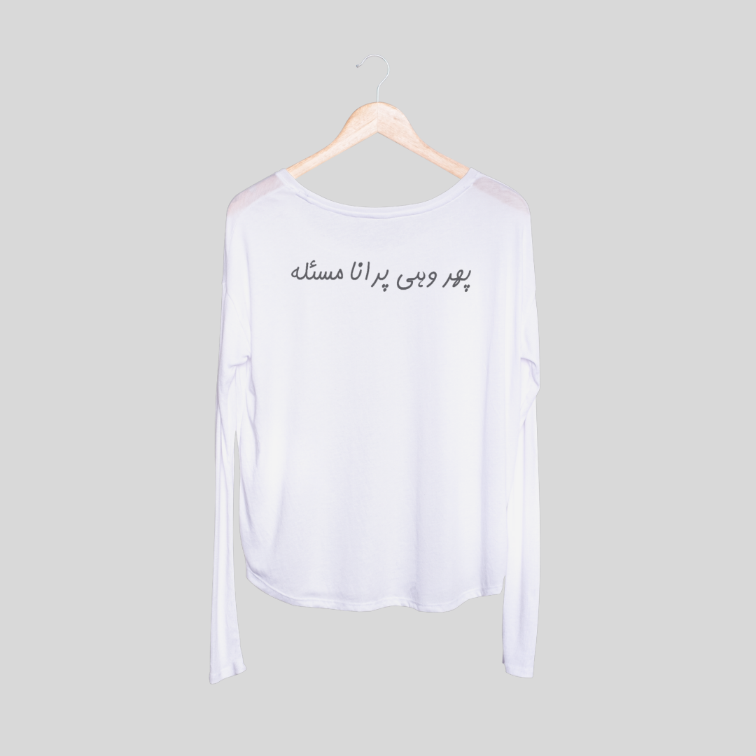 Wear the feeling that keeps coming back with the “پھر وہی پرانا مسئلہ” Long-Sleeves Unisex T-Shirt, a deeply relatable piece for Gen Z boys and girls stuck in the loop of emotions. Inspired by the famous line from Pakistani Gen Z singer Havi, this Urdu print captures that familiar ache of recurring heartbreak, emotional exhaustion, and unresolved feelings.